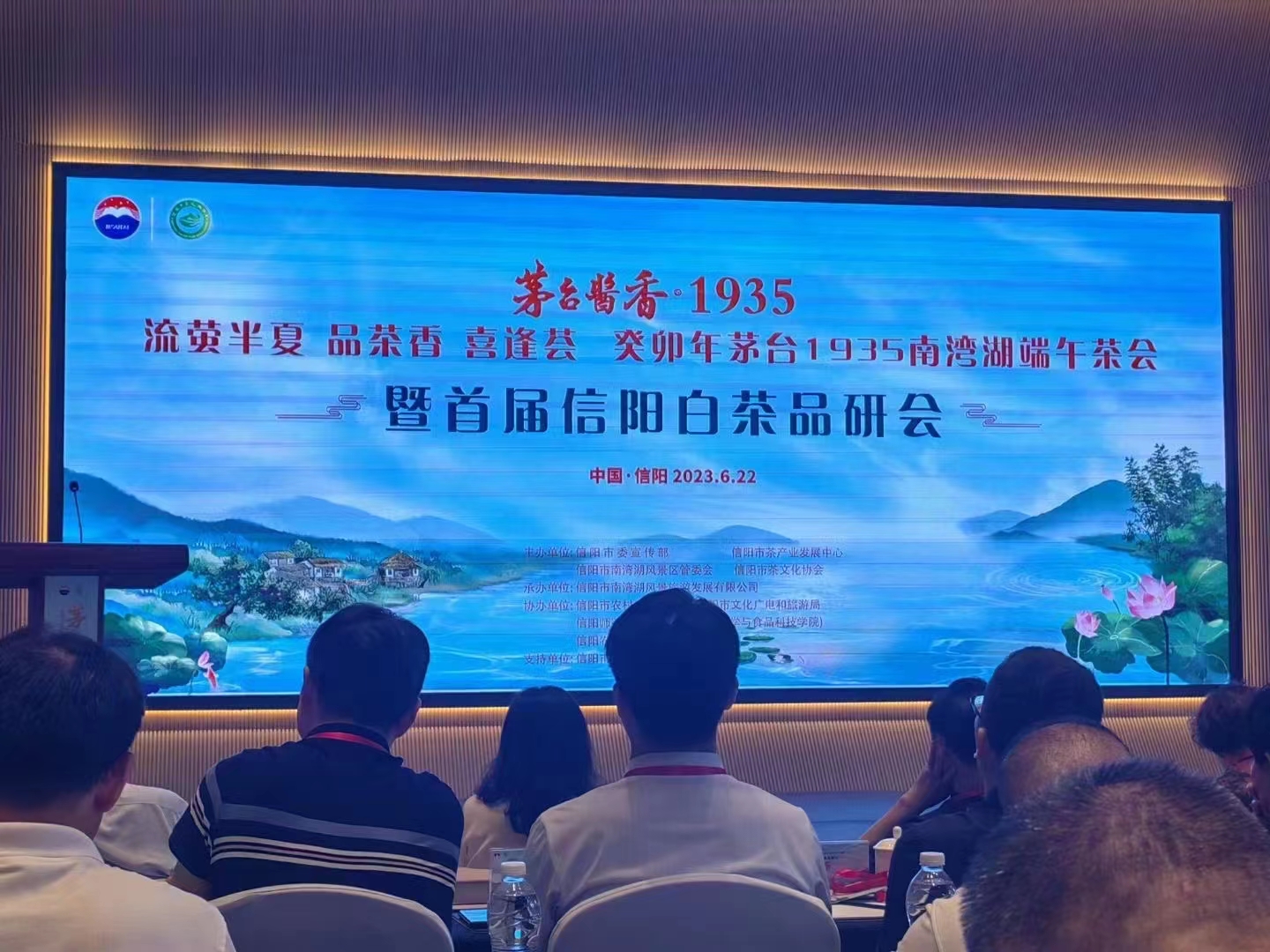 2023年6月22日,情浓端午,向美而行,创新驱动——信阳市在南湾湖风景区开元观堂酒店及南湾湖风景区望湖轩广场举办癸卯年南湾湖端午茶会暨首届信阳白茶品研会,本次大会对今年谷雨茶会36家获奖单位进行颁奖并对其茶样进行现场品鉴,beat365在线平台官网茶艺社团现场协助冲泡。