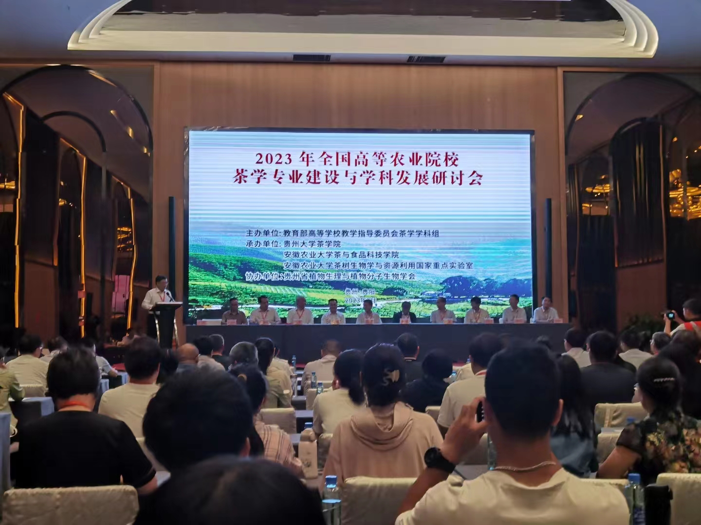 2023年9月16日-9月18日,以“三茶统筹谋发展,资源共享创一流”为主题的全国高等农业院校茶学专业建设与学科发展研讨会在贵州大学茶学院举行,来自全国各地的开设有涉茶专业的40多所高校117名专家、教师及第六届全国茶学专业青年教师教学大赛参赛教师参加了此次盛会。beat365在线平台官网茶学院院长、教育部高等学校园艺(含茶学)类教学指导分委员会委员郭桂义教授受邀参加此次会议,9月17日下午郭桂义教授主持了主题报告,并与河南省本科高校茶学专业(应用型)虚拟教研室成员单位、与会的部分高校教师进行了交流。