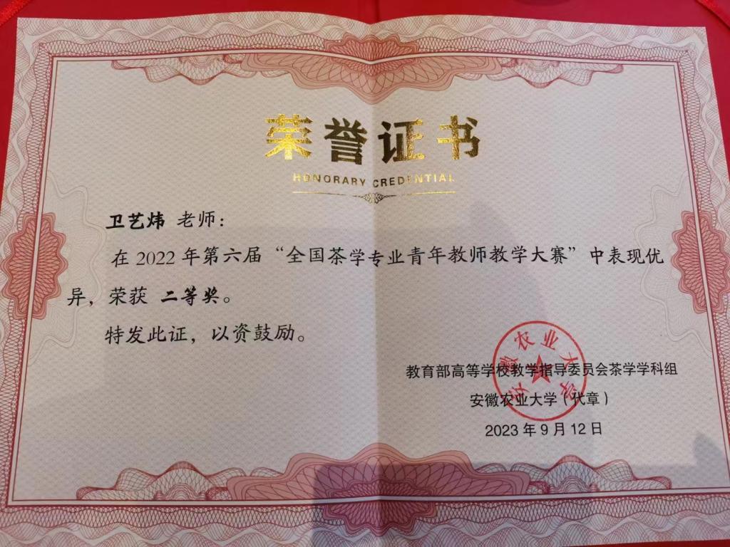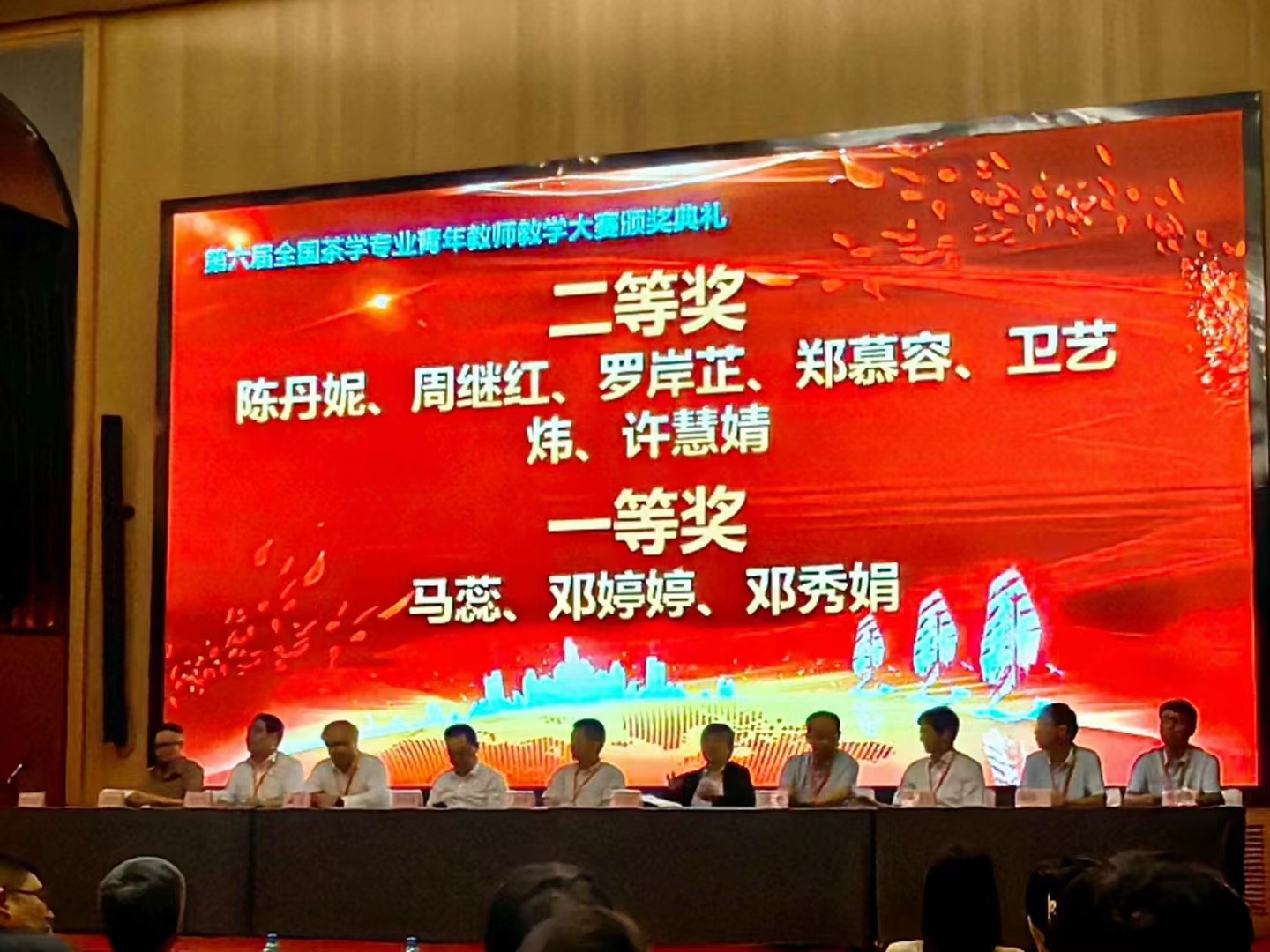 在主持报告环节,郭桂义教授受邀主持了17日下午的三场主题报告,并与到场的专家学者交流沟通,在第六届全国茶学专业青年教师教学大赛颁奖典礼中,茶学院青年教师卫艺炜荣获二等奖。