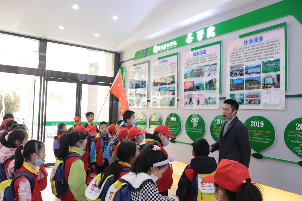 王鹏老师进行了致欢迎辞。他首先热烈欢迎小记者们的到来、并表示茶学院师生将竭力为小朋友们呈现信阳茶文化的独特魅力。随后,师生与小记者们进行了合影留念。