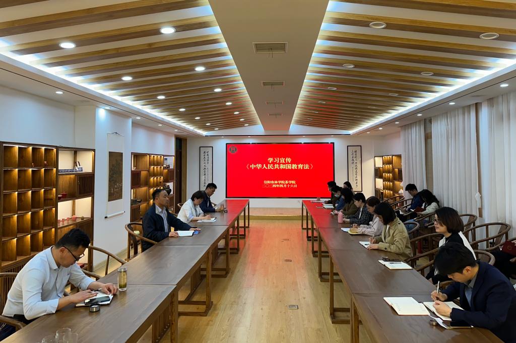 4月16日,茶学院党总支召开学习宣传《中华人民共和国教育法》会议。党总支书记王鹏带领大家重点学习了《中华人民共和国教育法》修订的主要内容。