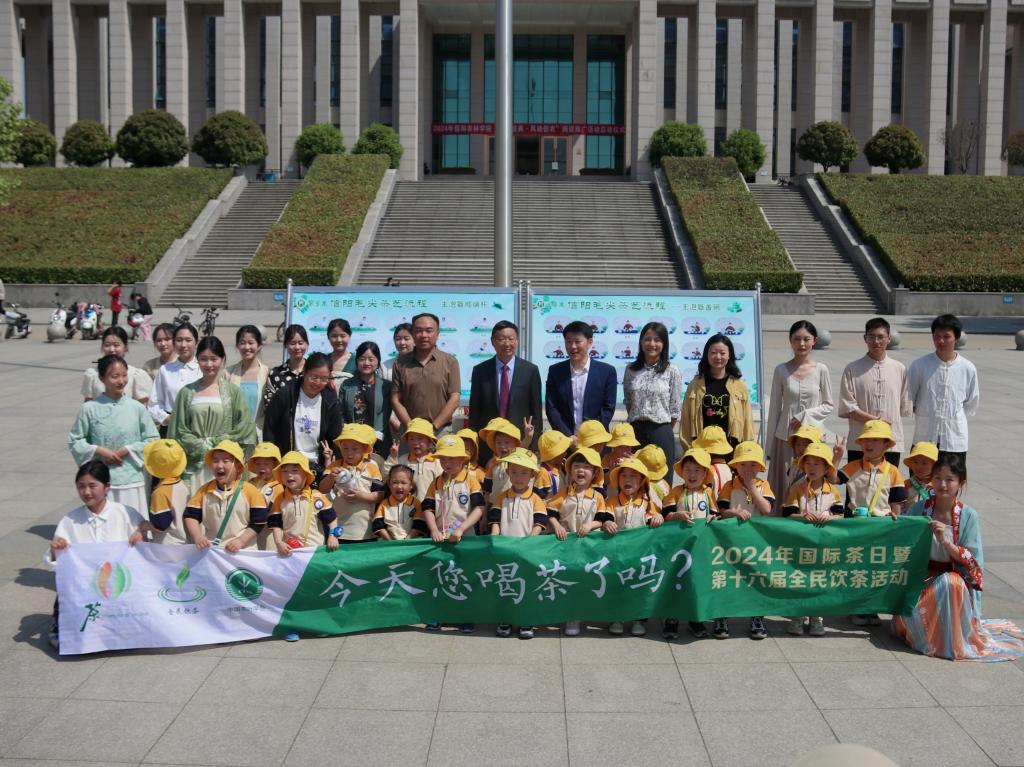 为弘扬和传承中国茶文化,营造茶文化氛围,4月26日上午,茶学院于汝宁广场举办了2024国际茶日暨第十六届“全民饮茶日”及“中国梦”主题茶会活动。学校党委委员、副书记王万玲,党委委员、副校长李益民、黄立,全国人大代表、河南豫南茶树资源综合开发重点实验室主任郭桂义,校党委学工部部长、学生处处长靳潢,校工会副主席李门双,校团委书记朱同留,茶学院党总支书记王鹏,以及信阳市人民政府机关幼儿园小一班小朋友们和茶学院师生代表参加了此次活动。