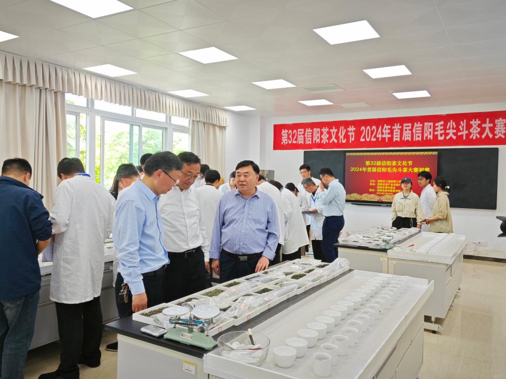 本次大赛作为第32届信阳茶文化节的活动之一,共收到信阳市各产茶县区参赛的信阳毛尖样品139个。活动期间,beat365在线平台官网副校长李益民、二级教授郭桂义到审评现场并与评审专家进行交流,了解茶样审评方法及推选过程。