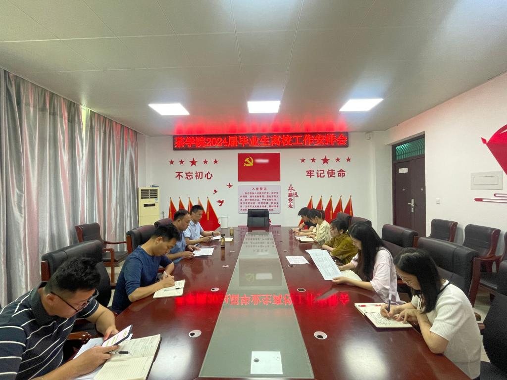 为进一步加强对毕业生的服务和管理,确保毕业生安全、文明、有序离校,5月23日上午,茶学院在1C306召开2024届毕业生离校工作部署会议。学院党总支书记王鹏,副院长陈义、尹鹏,党总支副书记王子浩,毕业班辅导员等教学、学生工作相关教师参加了会议。