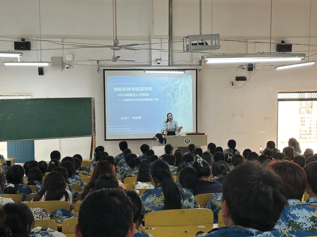 为使2024级新生更加了解学校关于学生学籍管理方面的一些规定,帮助新生顺利开启大学学习生活,茶学院于 9月25日下午5点至6点在2教406召开了茶学院2024级新生入学教育——学籍和学分制管理制度介绍。报告会由茶学院教学秘书张向娜老师主讲,2024级全体新生参加。