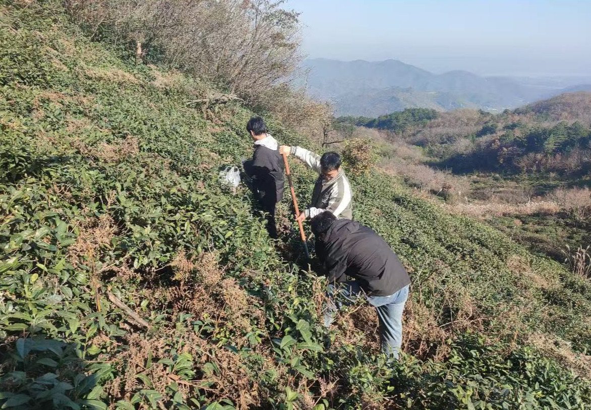 在信阳市三云集农林生态公司负责人马世勇的陪同下,孙慕芳教授登上浉河区董家河镇鹰咀石西坡和北坡,实地查看当地茶树品种,并指导我院师生采集实验样本。