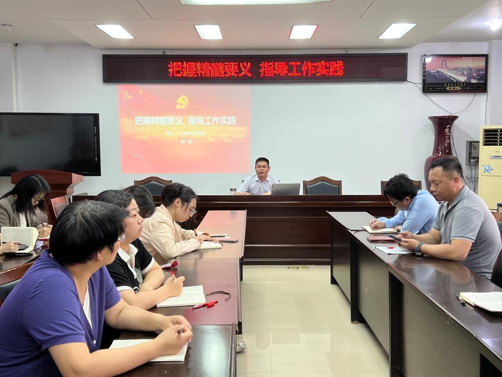 张广强围绕党的二十大报告主题,结合党史、新中国史、改革开放史,对学习贯彻落实党的指导思想的重要性进行阐释;通过对十个明确、十四个坚持、十三个方面成就、六个必须坚持等内容的具体解读,对习近平新时代中国特色社会主义思想内涵进行深入阐释。