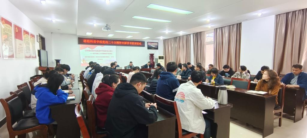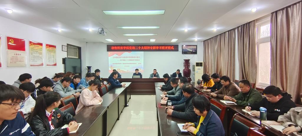 为完整、准确、全面领会和深入贯彻落实党的二十大精神,把全院党员干部的思想和行动统一到党的二十大精神上来,推动党的二十大精神在我院落地生根,凝心聚力开创学校事业发展新局面,3月28日,动物科技学院学习贯彻党的二十大精神培训班开班,学院科级以上干部、支部书记、学生党员代表参加了开班式和学习活动。开班仪式由党总支副书记张广强主持。