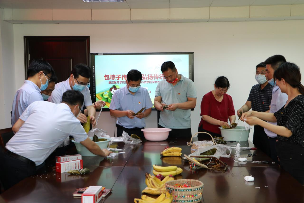 端午近,粽香飘。在端午节来临之际,为进一步弘扬中华民族传统文化,营造温馨浓厚的节日氛围。6月2日,继续教育学院党支部和宠物医学教工党支部联合开展“共话端午节•同抒爱国情”主题党日活动,同时特邀嘉宾学校党委组织部副部长李建柱同志参加了此次活动。