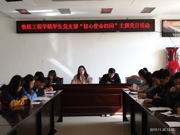 为推动“不忘初心、牢记使命”主题教育走深走实,2019年11月20-25日牧医工程学院各党支部相继开展“初心使命四问”主题党日。