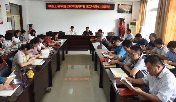 2019年是中国共产党建党98周年,新中国成立70周年,是贯彻党的十九大精神的重要之年,是决胜全面建成小康社会的关键一年。为隆重庆祝党的生日和新中国成立70周年,6月26日到28日,牧医工程学院各支部分别开展了庆祝中国共产党成立98周年主题党日活动,通过重温入党誓词、诵读“红色家书”、支部书记上党课、观看《面向世界的中国共产党》等内容,感怀党和祖国的光辉历程和丰功伟绩,继承和发扬党的优良传统和作风,激励全院党员不忘初心,牢记使命,忠于职守,勤奋工作,为学院内涵建设贡献力量。(牧医工程学院)