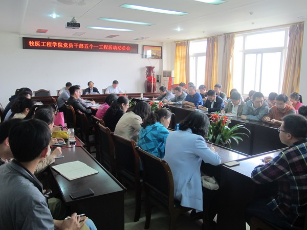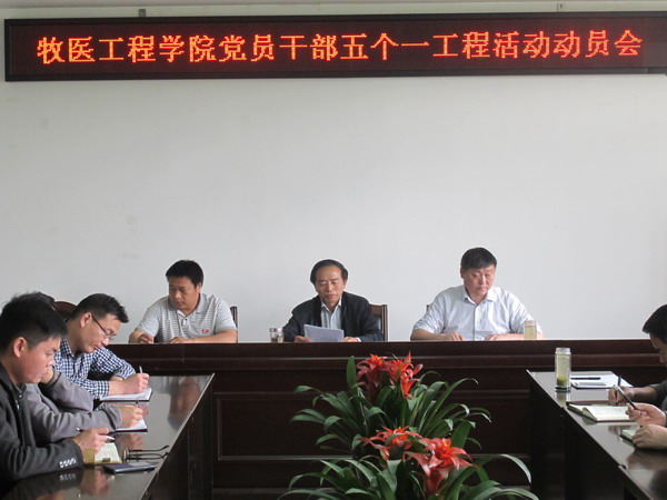 4月19日下午,牧医工程学院在院会议室召开党员干部“五个一工程”活动动员会。会议由副院长刘纪成主持,全院教职工和部分学生代表参加了会议。