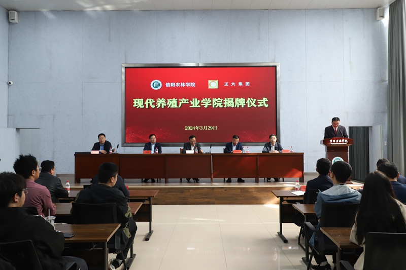 段昌友对现代养殖产业学院的成立表示祝贺。他强调,校企共建“现代养殖产业学院”是校企双方相互认可、优势互补、不懈努力的结果,是时代所需、产业所需。信阳市是河南省畜牧业大市,希望现代养殖产业学院利用好本地区的政策优势、产业优势、资源优势,激发内生动力,培养更多知农爱农兴农的应用型人才,助力区域畜牧产业的发展和乡村振兴。