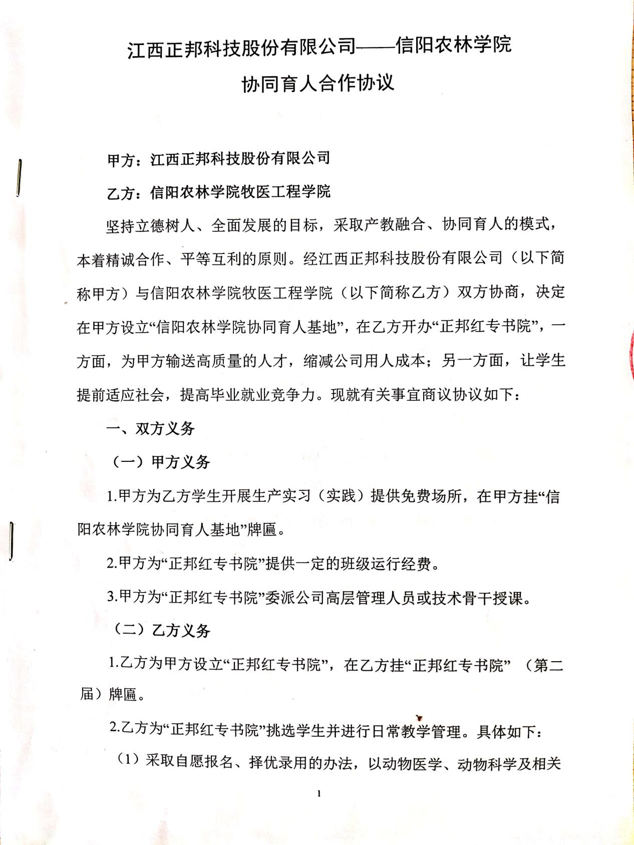 牧医工程学院校企合作协同育人——江西正邦科技股份有限公司