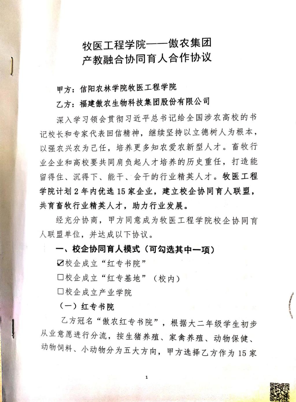 牧医工程学院校企合作协同育人——福建傲农生物科技集团股份有限公司