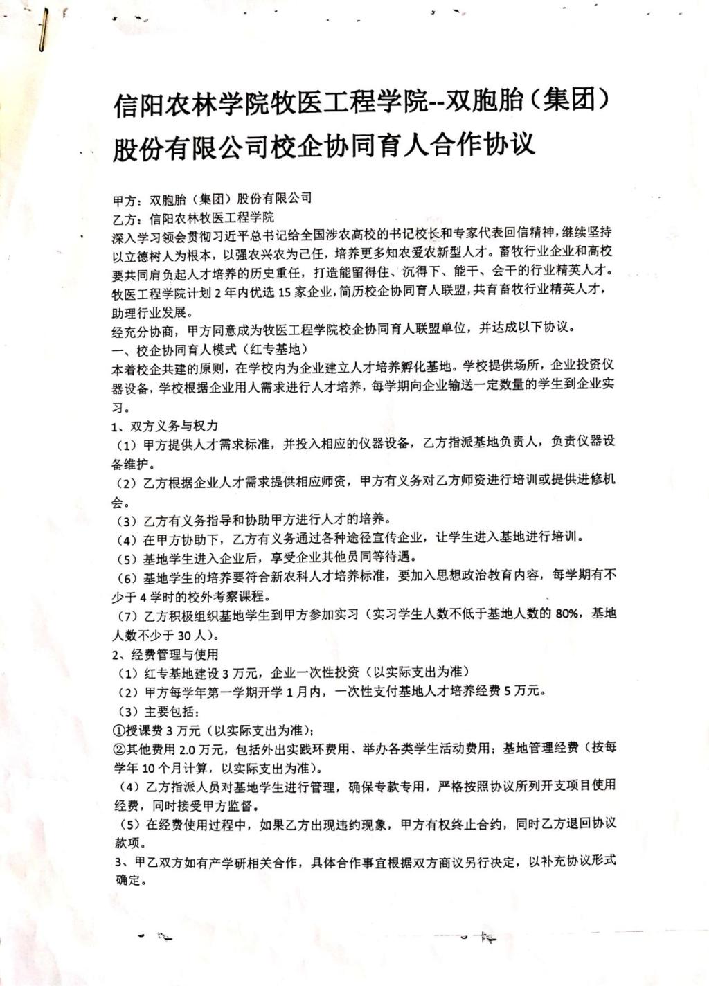 牧医工程学院校企合作协同育人——双胞胎(集团)股份有限公司