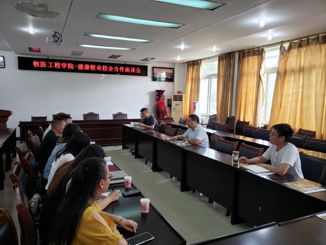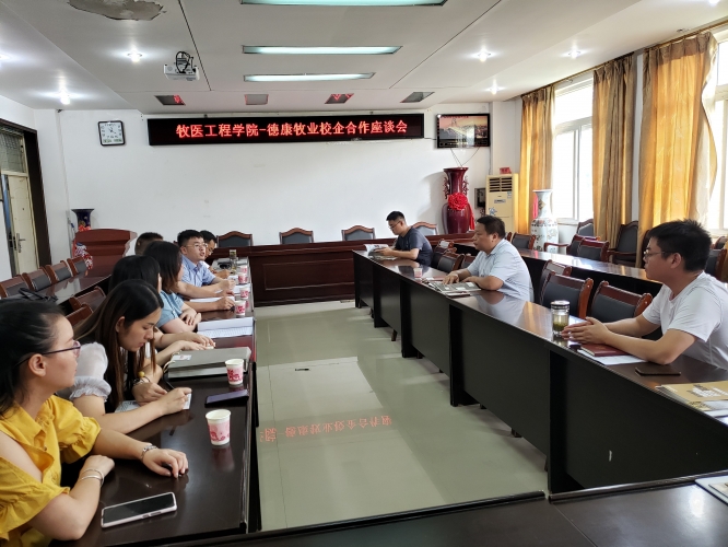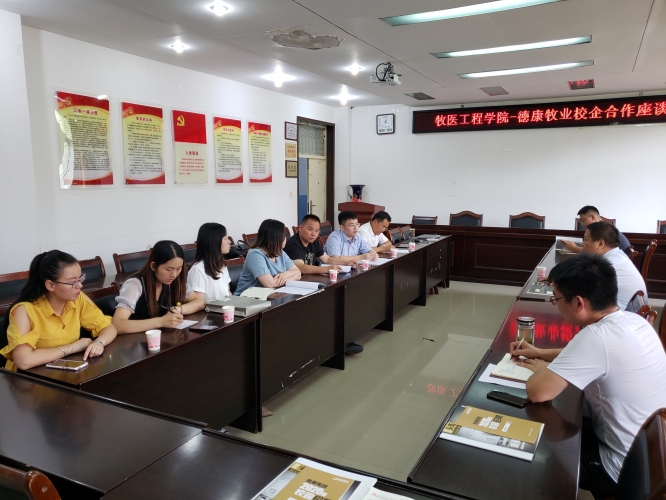 9月1日下午,德康牧业负责人陆春来经理一行7人就校企联合培养人才及相关合作事项来牧医工程学院考察交流。院党总支书记刘纪成、党总支副书记张广强、副院长吴海港及学院其他相关负责人和老师参与了此次交流座谈会,会议由张广强副书记主持。