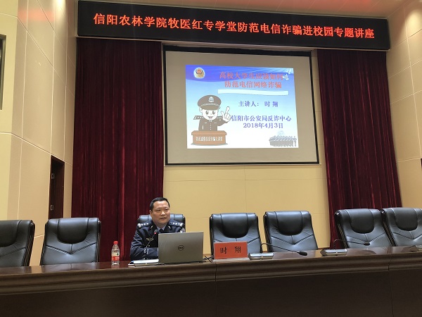 近年来,大学生遭遇电信诈骗事件屡见不鲜,大学生成为电信诈骗的高发群体。为进一步加强我院学生防骗、识骗意识和能力,预防和减少诈骗案件的发生,4月3日,牧医红专学堂第二讲邀请信阳市公安局反诈中心时翔主任,在图书馆报六楼给全院大一新生做了一场题为 “大学生如何防范电信诈骗”的专题报告会。
