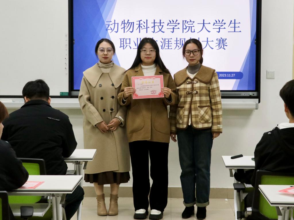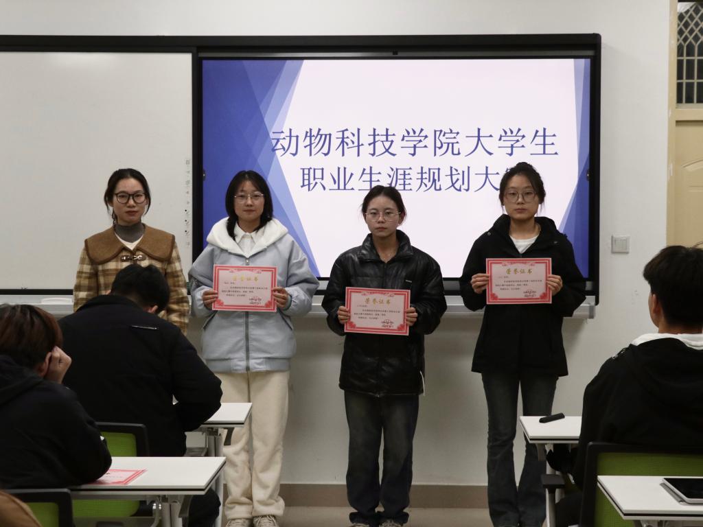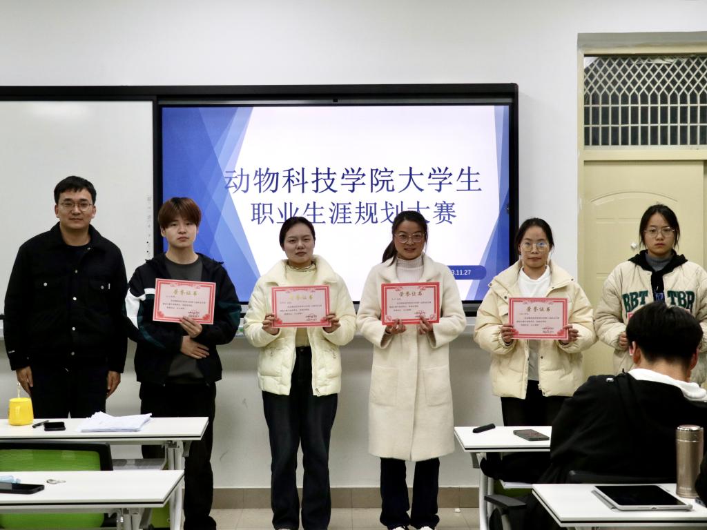 为引导大学生树立正确的成才观、就业观和择业观,科学合理规划学业与职业发展,动物科技学院于2023年11月27日在2C401教室举办大学生职业规划大赛。动物科技学院尹磊、陶梦筱及麻冰洁老师担任评委。