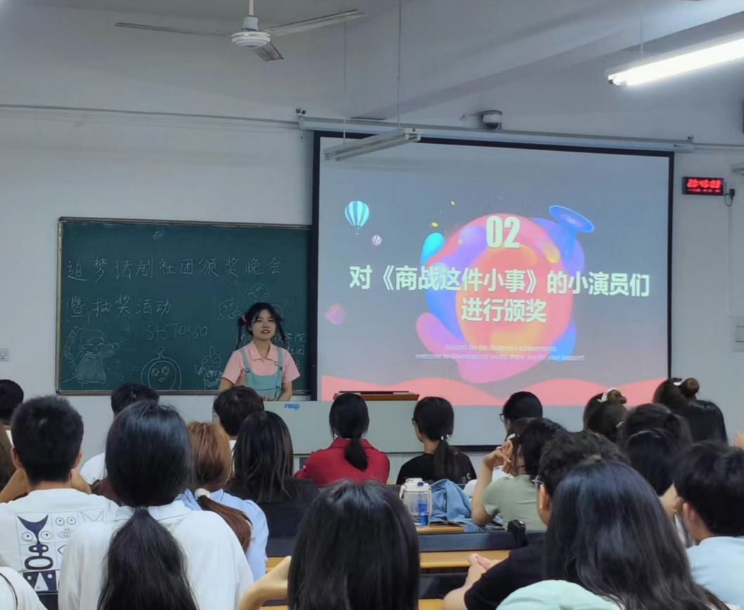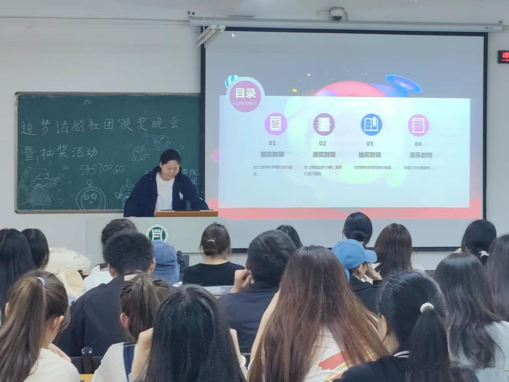 学生社团是校园文化的重要组成部分,为提高社团成员工作的积极性并促进成员之间的交流与合作,展现社团风采,更好地发挥社团在校园文化生活中的积极作用,动物科技学院追梦话剧社团于5月28日晚在二教103举办颁奖晚会暨抽奖主题活动。