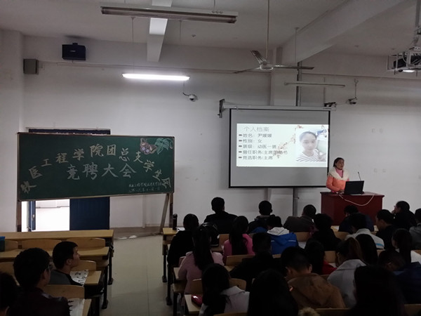 2016年11月1日下午,牧医工程学院在二教306教室举行了团总支学生会干部竞聘大会。院团总支书记张广强老师及班级辅导员老师出席了竞聘大会并担任评委。