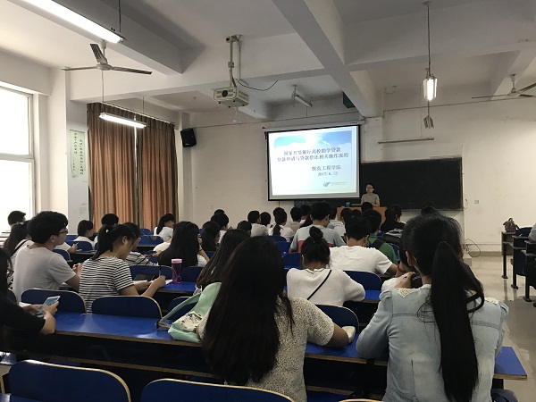 牧医工程学院于2017年6月13日中午12点一教104教室,举行了2017年国家助学贷款知识讲座,牧医工程学院2014、2015、2016级有意向申请助学贷款的同学积极踊跃参与讲座。