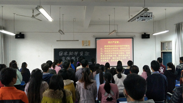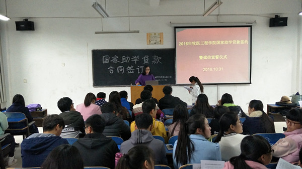 2016年10月31日中午13:00,牧医工程学院于一教D102举行“国家助学贷款签约暨诚信宣誓仪式”活动。本次活动由李洵老师主持,申请助学贷款的同学们积极、按时的参加了本次活动。