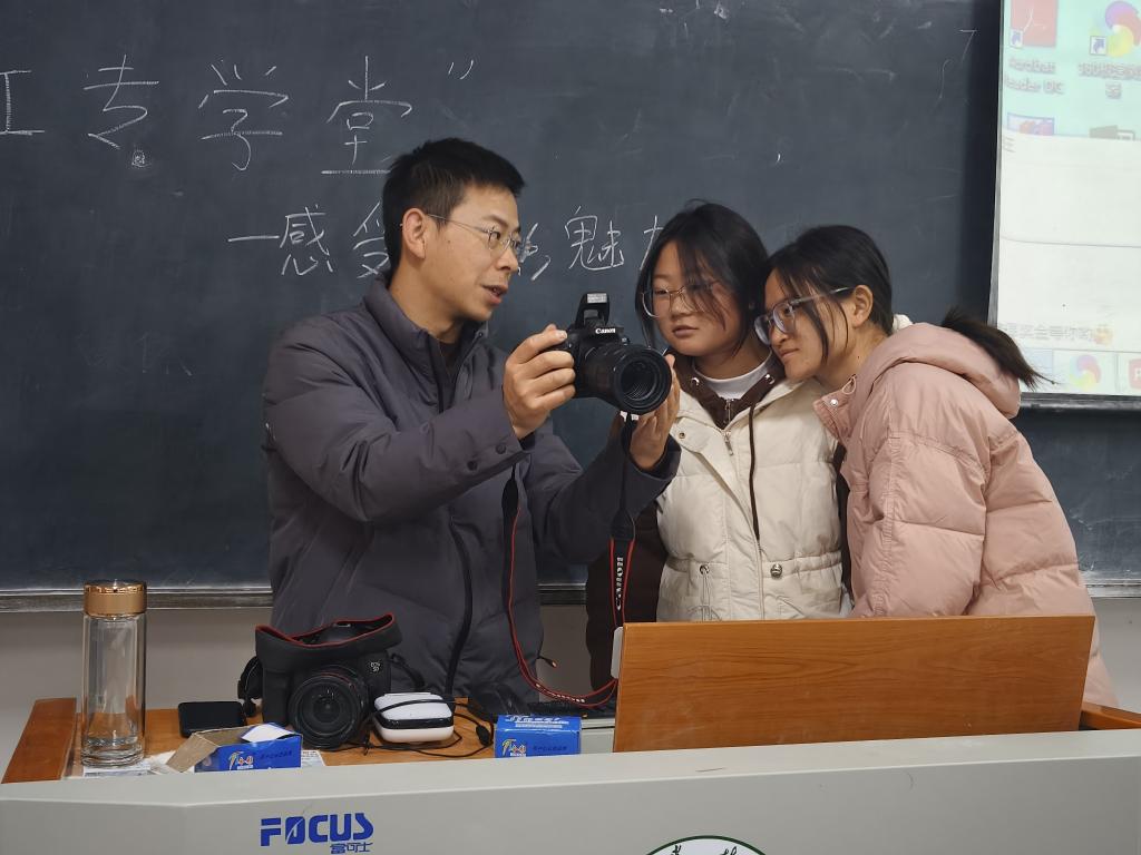 此外,马骁还为同学们做了简单示范,讲解相机的各个功能按钮以及如何调整焦距、光圈等参数,极大地提升了同学们的实操能力。