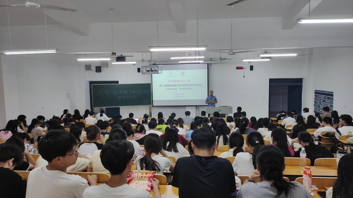 2024年5月15日,“一带一路”国际生猪产业大会学习分享与交流会在二教206举行,动物科技学院200余名学生积极参与。此次学术交流活动由青年教师秦锋主持,学院副院长刘涛参加交流会。