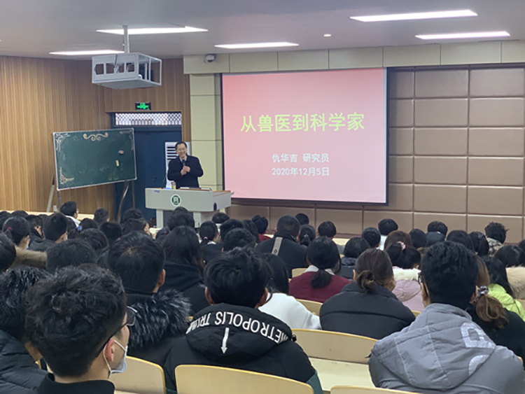 12月5日,牧医红专学堂特邀中国农业科学院哈尔滨兽医研究所猪传染病研究室主任、猪烈性传染病创新团队首席科学家仇华吉为学生开展题为《从兽医到科学家》的学术报告会。