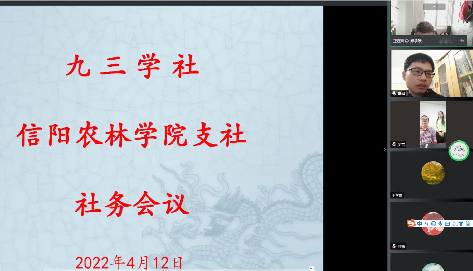 支社主委王学增首先带领与会成员学习了信阳市“两会精神”和全市统战工作会议精神,转达了九三学社信阳市委五届六次全体(扩大)会议精神。支社副主委郑承轶代表支社班子对2021年度支社工作进行了全面总结:在过去的一年里,社员们时刻谨记为国育才的时代责任,在做好立德树人教育教学工作的同时,积极做好疫情防控,助力经济社会发展,取得了显著成绩。会议安排部署了2022年度有关活动日计划、科技服务、调研课题、社情民意信息、社志材料撰写等主要工作。要求广大社员要以社市委年度工作要点为指导,在做好疫情防控的同时,全面加强自身建设,履行参政议政职责,开展社会服务工作,积极撰写信息提案,以优异的成绩迎接党的二十大的胜利召开。