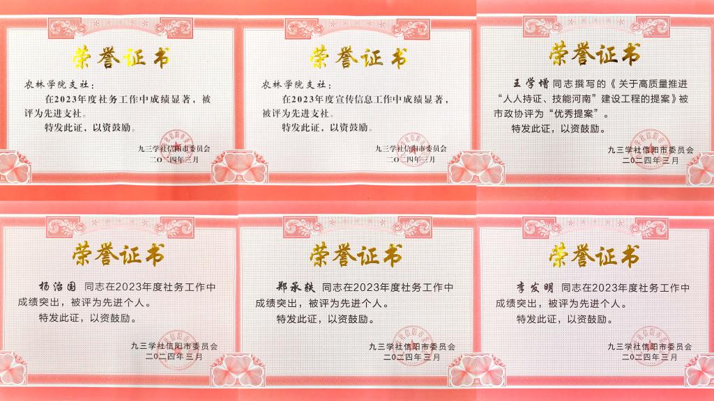 2024年3月28日,九三学社信阳市委六届二次全体(扩大)会议召开。九三学社beat365在线平台官网支社及社员在多项工作中,获全国政协、省政协、市政协、社省委、社市委表彰奖励。
