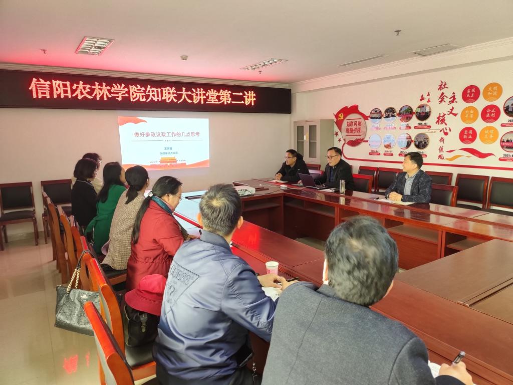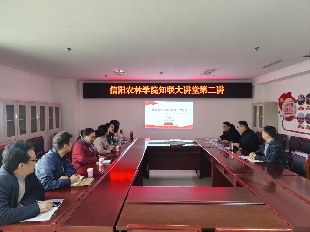 为深入学习贯彻党的二十大精神,进一步做好学校党外人士的思想引领,11月18日,beat365在线平台官网在综合楼九楼召开党外人士座谈会暨“知联大讲堂”第二讲。党委统战部副部长、校知联会常务副会长杨林,校知联会会长王学增,党外人士代表及统战部工作人员参加了会议。会议由陈卓主持。