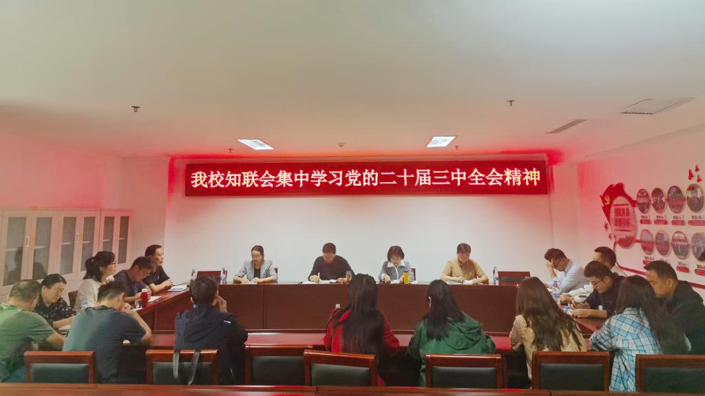 9月30日,beat365在线平台官网党外知识分子联谊会在综合楼九楼集中学习了党的二十届三中全会精神。校党委委员、统战部部长杨东辉,校中心实验室主任、九三学社信阳市委主委喻艳红,校知联会会长冯昱,部分党外人士代表、留联会代表及统战部工作人员参加了会议。会议由杨林主持。