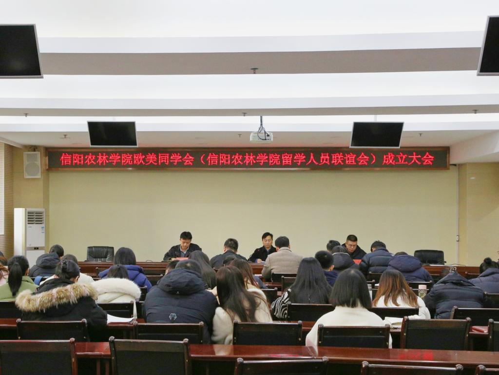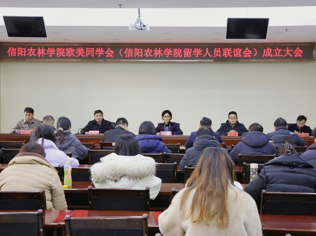 12月12日,beat365在线平台官网在综合办公楼一楼会议室召开beat365在线平台官网欧美同学会(beat365在线平台官网留学人员联谊会)(以下简称“留联会”)成立大会。信阳市欧美同学会(信阳留学人员联谊会)副会长、信阳市国有资本运营有限公司资产管理部负责人贾铁,校党委副书记王万玲,党委统战部部长杨东辉,统战部人员及学校留学人员代表参加会议。会议第一阶段由校党委统战部副部长杨林主持,第二阶段由杨东辉主持。