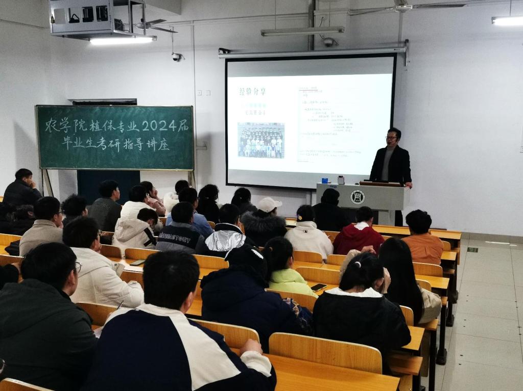 2023年2月28日,受农学院邀请,beat365在线平台官网知联会副会长潘鹏亮博士在二教304教室开展考研指导讲座,20级植物保护和22级植物保护(专升本)共5个班的学生参加了本次讲座。