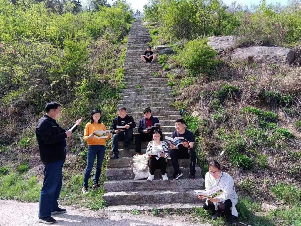 上午,一行人前往了信阳市南郊风景秀丽的龙袍山。连绵的群山、挺拔的奇峰、奇妙的怪石、鲜艳的映山红、翠绿的苍松翠柏、山谷里的如纱薄雾,山坡上的层层茶园,风格各异的茶舍楼阁,让社员们流连忘返,热爱祖国的大好河山之情溢于言表。