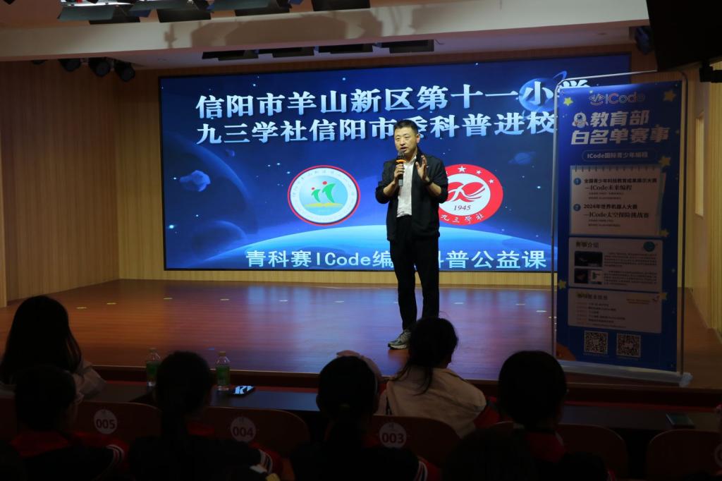 2025年4月,在信阳市第十三小学的教室内,郑承轶举办了一场别开生面的编程语言科普讲座,带领学生们探索了语言与思维的奥秘。通过多媒体演示和互动问答,他将抽象的科学原理转化为生动的故事,激发了孩子们的求知欲。这样的场景,是他数年来致力于科普教育的缩影。