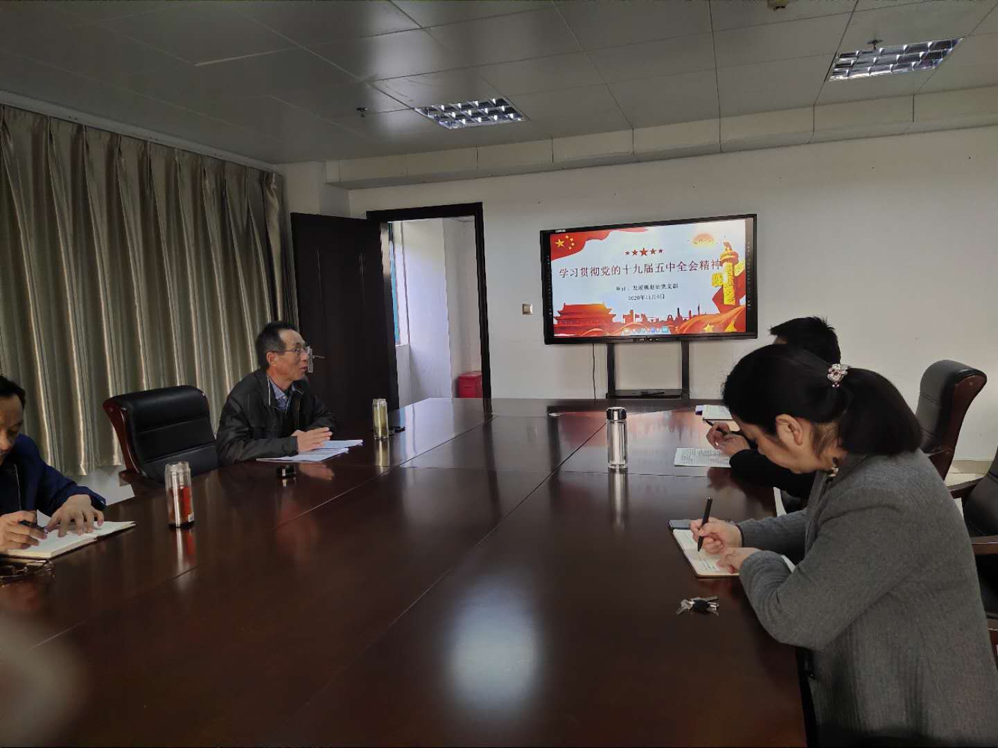 11月6日下午,审计、发展规划处党支部在三楼第五会议室召开学习贯彻党的十九届五中全会精神专题会议,会议由支部书记杨刚同志主持。