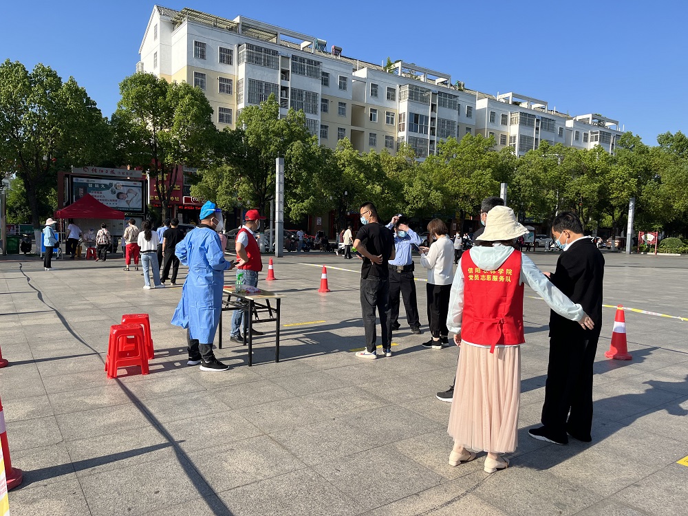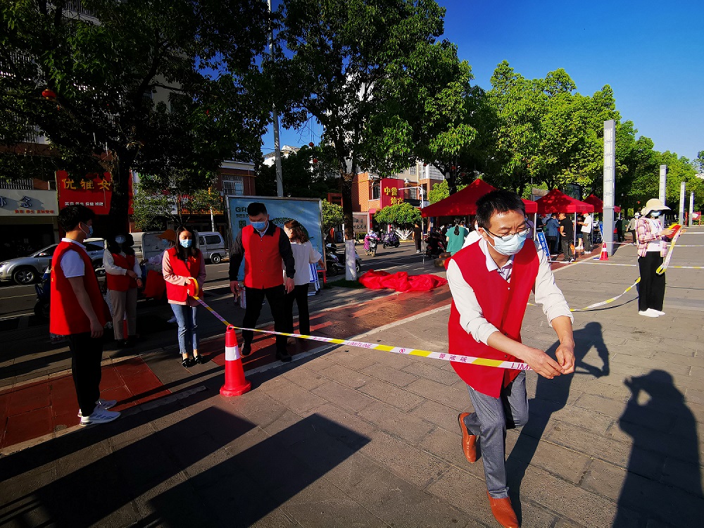 为做好结对社区全员核酸检测工作,5月6日、11日,审计处、发展规划处党支部叶兆伟、杨克荣二位同志与其他党支部党员教师组成志愿者队伍,到平桥区世纪广场社区举行“结对社区疫情防控”主题党日活动。各党员教师协助世纪广场社区有序组织开展全员核酸检测工作,全力以赴做到“应检尽检,不漏一人”,并按要求完成了该社区全员核酸检测工作。