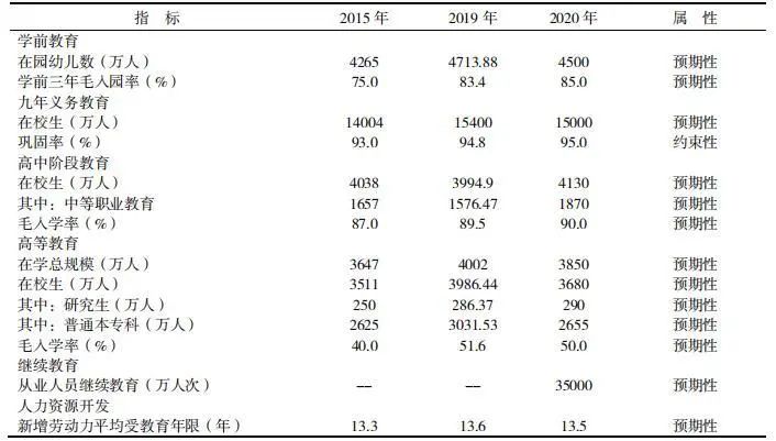 表1 教育事业发展和人力资源开发“十三五”时期主要目标和2019年实现程度