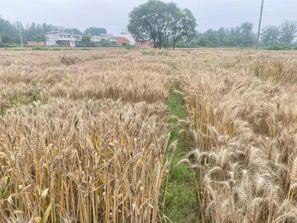 在信阳市息县项店乡宏升粮食制品有限公司种植基地调研小麦成熟状况