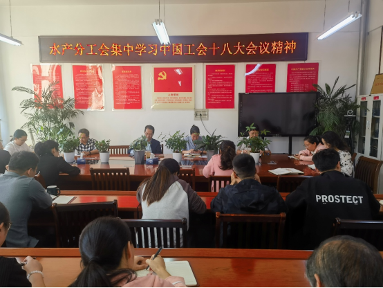 10月17日下午,水产学院分工会组织召开专题会议,传达学习中国工会第十八次代表大会精神。水产学院全体教职工参加了会议,会议由水产学院党总支副书记、水产分工会主席黄光玲主持。
