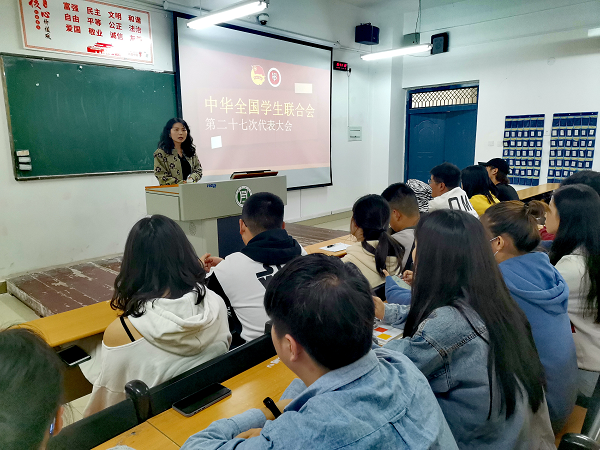 为学习习近平总书记致全国学联二十七大的贺信精神、中华全国学生联合会第二十七次代表大会会议精神,进一步推动我院学生会改革落地落实,10月8日,规划与设计学院在二教101开展学习中华全国学联二十七大精神培训会,学院团总支书记魏薇主持培训会,大二各班班长、团支书和团总支学生会参加培训学习。