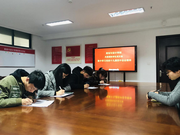 11月28日下午,规划与设计学院风景园林学生党支部于702党员活动室召开十九届四中全会的专题学习会,本次会议由支部书记杨丽娜主持,全体学生党员参加。