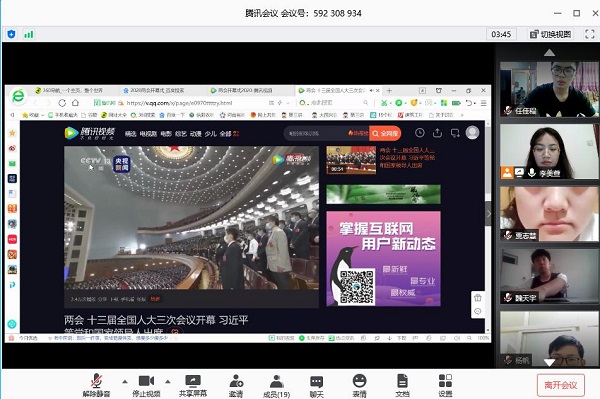 党支部书记李美萱组织全体同志通过视频会议,共同观看两会的学习视频,随后进行了积极的发言讨论。支部成员们纷纷表示2020是不平凡的一年,但惟其艰难,才更显勇毅,两会隆重召开,意义更为重大,影响更加深远,作为学生党员,我们更要立足本心,学好专业知识,不断巩固理想信念,扛起实现中华民族伟大复兴的历史使命。