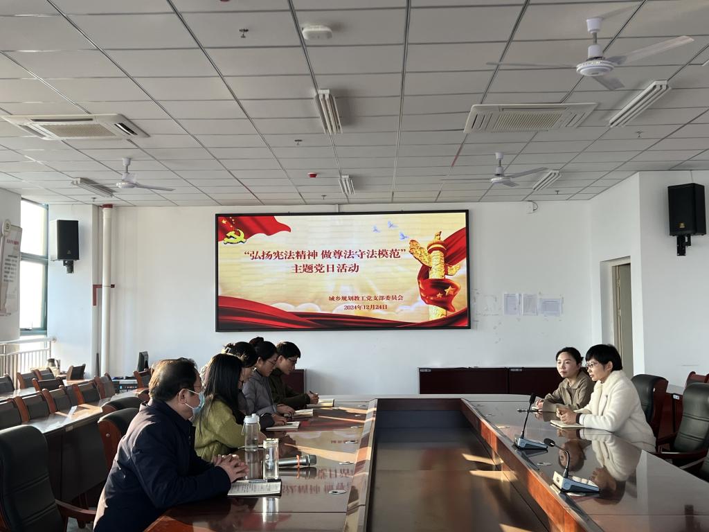 为深入学习贯彻习近平法治思想,弘扬宪法精神,增强党员教师的法治观念,2024年12月24日,城乡规划教工党支部组织开展“弘扬宪法精神,做尊法守法模范”主题党日活动,支部全体党员参加此次活动,为推动法治教育融入专业教育注入新的活力。