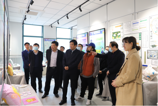 吕市长一行先来到艺术教育中心602展厅,参观了“为信阳而设计”文化创意作品展。展出文化创意产品丰富多样:信阳红色文化主题、郝堂村美丽乡村主题、城阳城历史文化、信阳毛尖包装设计、信阳板栗、固始笨蛋鸡、潢川贡面主题等文创设计等。此次展品通过对地方特色文化元素进行挖掘设计,打造具有信阳特色的文化衍生品。师生能够用心提炼地域文化符号,把设计作品转化为创意产品,让文化创意与信阳旅游资源开发融合。在参观我院展厅过程中,吕市长对师生作品进行了详细的了解和指导,参加座谈会的领导、专家就信阳文创设计问题进行了充分研讨和深入交流。在进行全国大学生乡村振兴创意大赛设计作品欣赏时,吕旅表示,邢勇校长为新县文创大赛做了大力支持。学院可继续深挖信阳文化符号,多出更多的成果文化创意成果,为信阳文化旅游事业增色,为信阳乡村振兴发展添彩。