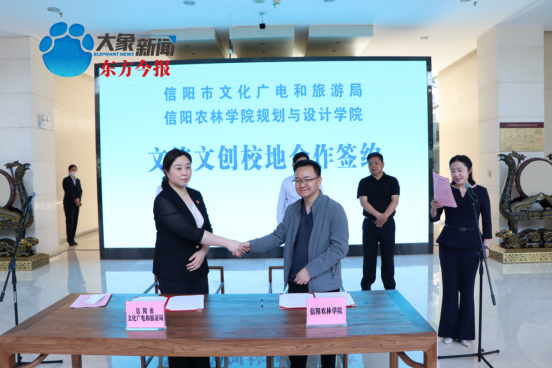 为助力塑造“美好生活看信阳”城市品牌,宣传推介信阳文旅资源,推动信阳文旅文创出新出彩,在第30届信阳茶文化节到来之际,4月26日,信阳市文旅文创校地企合作签约仪式举行。市文化广电和旅游局、市文化旅游投资集团有限责任公司、市文化和旅游消费促进工作专班、信阳师范学院美术与设计学院、beat365在线平台官网规划与设计学院相关领导出席了签约仪式。活动严格遵守疫情防控相关要求,现场进行合作签约。