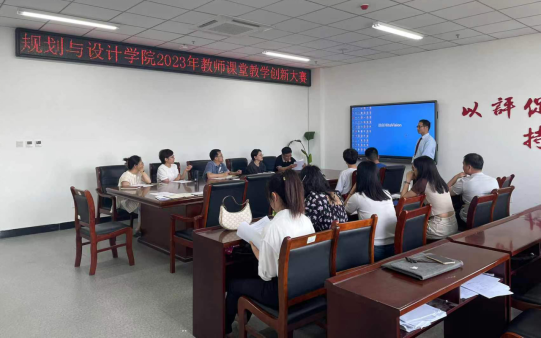 为了进一步推动课堂教学改革与创新,提高教师课堂教学能力,提升教育教学质量,规划与设计学院于6月12日在艺术楼705会议室举办2023年教师课堂教学创新大赛。大赛评委由教研室主任、往届大赛获奖选手代表担任,部分青年教师参与观摩学习。大赛由副院长张志锋主持。